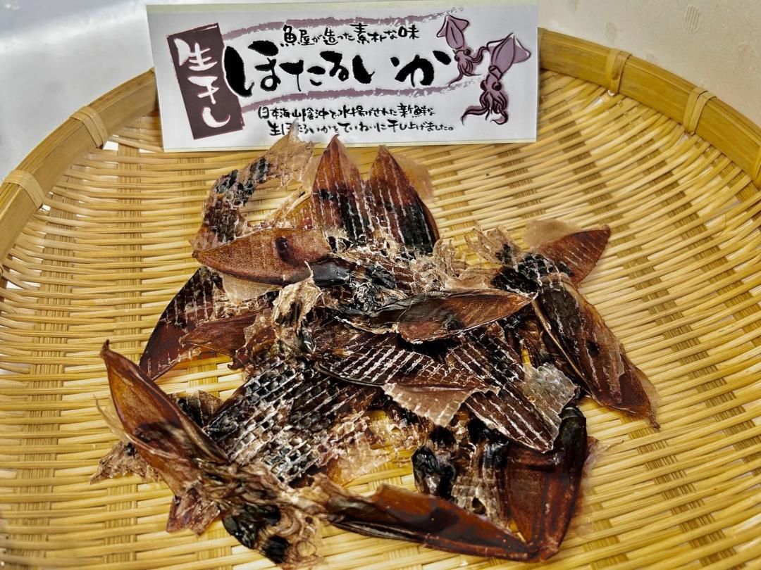 山陰日本海の特産品、ほたるいかを、肝の旨味をそのままに、余分な味つけをせずに素干ししました。
